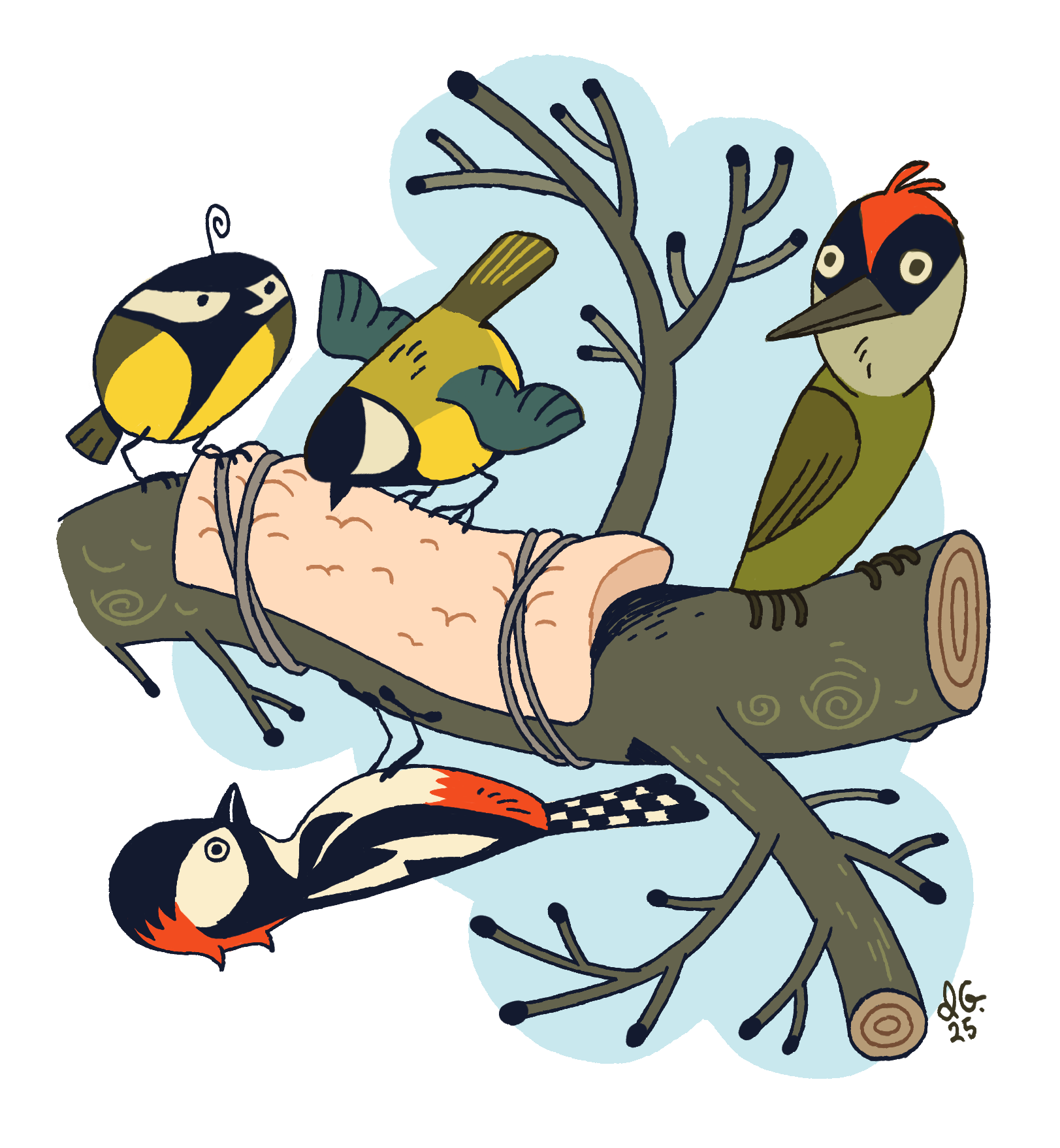 Apart from those moments though it’s been a rough one to say the least. I’ve barely had energy to stand up, let alone draw or do anything else productive. Only now that I’m better did I draw a little illustration of the birds I saw outside my grandparents’ window.